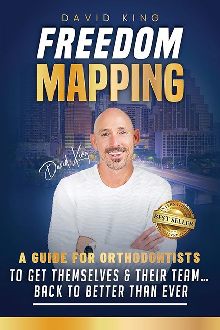 Let’s talk typography. Freedom Mapping sits proudly in thick, bold letters that look ripped from a political yard sign, complete with an eager gold gradient that screams, “Trust me, I’m important!” The subtitle — “A Guide for Orthodontists to Get Themselves & Their Team… Back to Better Than Ever” — is a triple-decker stack of buzzwords arranged like a corporate haiku. Each line shouts a different message, none of which have any visual or emotional harmony.