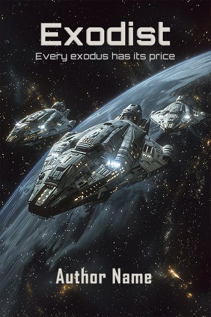 A bold and cinematic sci-fi cover, Exodist captures the scale of interstellar fleets and the cost of war — perfect for space opera and galactic empire fiction.