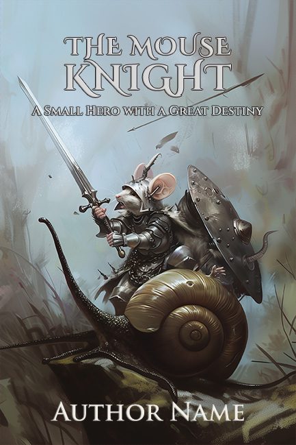 Step into a world where courage comes in small packages. The Mouse Knight captures the spirit of epic adventure with a bold illustration of a mouse clad in shining armor, raising his sword atop a snail steed. The dynamic composition blends whimsy and grandeur, making it an ideal cover for fantasy novels aimed at both young readers and fans of unique, imaginative storytelling.