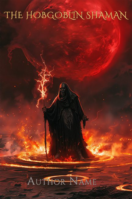 A cinematic fantasy cover steeped in power and atmosphere. A lone shaman stands before a burning ritual circle, his staff crackling with energy under a crimson moon. Ideal for authors of dark fantasy, military sagas, and shamanic magic tales, this artwork evokes the primal power of war and worship.